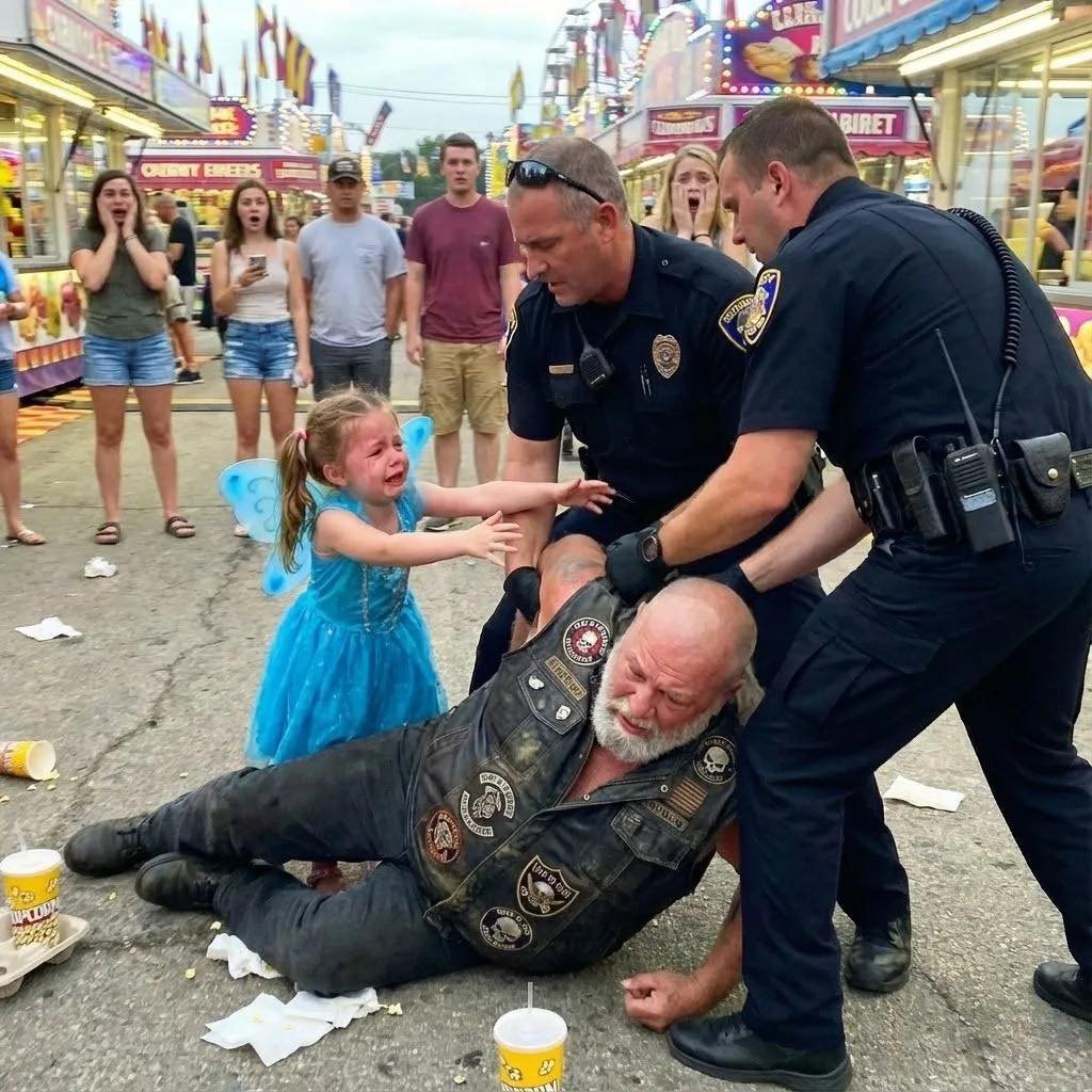 My daughter’s scream cut through the noise of the county fair like a siren, sharp enough to stop every heartbeat in its path. “That’s my grandpa!” she cried, her tiny fists pounding against the arms of the police officers who were pinning my father to the ground. A five-year-old in a pink fairy dress fighting grown men because someone decided a leather vest and long gray hair were signs of a criminal.