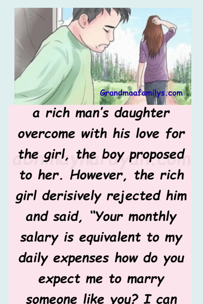 A poor boy was in love with a rich man’s daughter overcome with his love for the girl, the boy proposed to her.