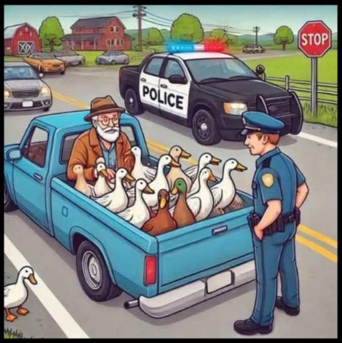 The next day, during the same patrol, the officer nearly dropped his coffee. Coming down the street — unmistakably — was that same old truck, still overflowing with ducks. But this time they were wearing sunglasses, some perched on the edge like celebrities avoiding paparazzi. Music blasted from the radio, and several ducks bobbed their heads to the beat.