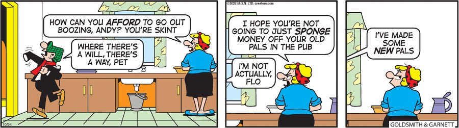 In this quintessential early strip, a neighbor finds Andy lounging against a lamppost. “What’s the matter, Andy? Lost your job?” he asks. Andy, without moving a muscle, replies, “Nope. Found it.” This single panel is the foundational thesis of Andy Capp. It’s not mere laziness; it’s a conscious, almost intellectual, commitment to avoiding work. It establishes Andy not as a loser, but as a man who has won his freedom on his own terms, however dubious those terms may be.