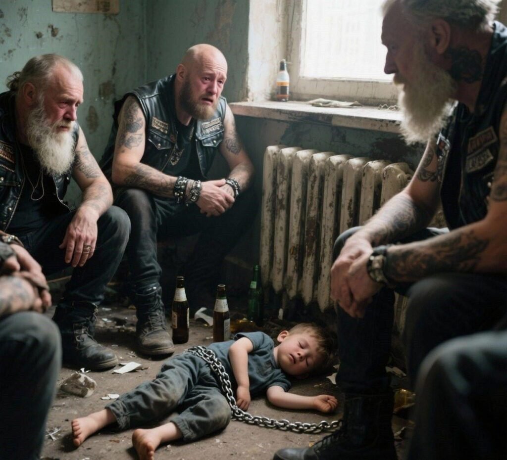 The boy’s name was Timothy. Timmy. Seven years old, though malnutrition made him look five. The chain was padlocked, but Crow had bolt cutters on his bike. When we freed him, Timmy just stood there, swaying slightly.